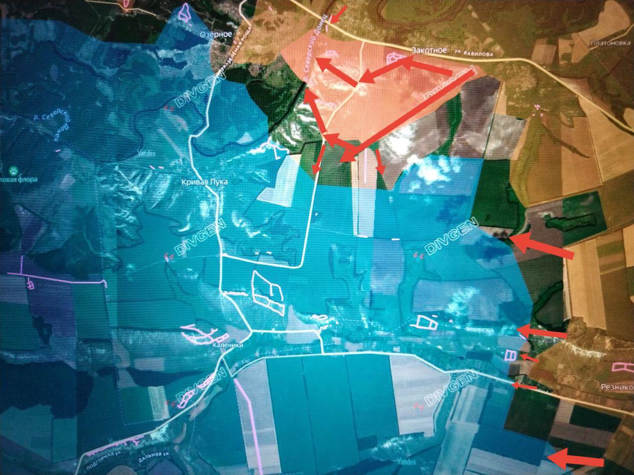Около недели назад ВС РФ начали атаковать "зажатого в клещи" противника с двух сторон: юга и северо-востока. В результате противник был выбит из хорошо оборудованных позиций на склонах высот, ВС РФ атакуют последний опорный пункт на склонах над Кривой Лукой и на юг, в направлении господствующей высоты и балки Стецкова. В этом же направлении атакуют подразделения севернее Резниковки.
