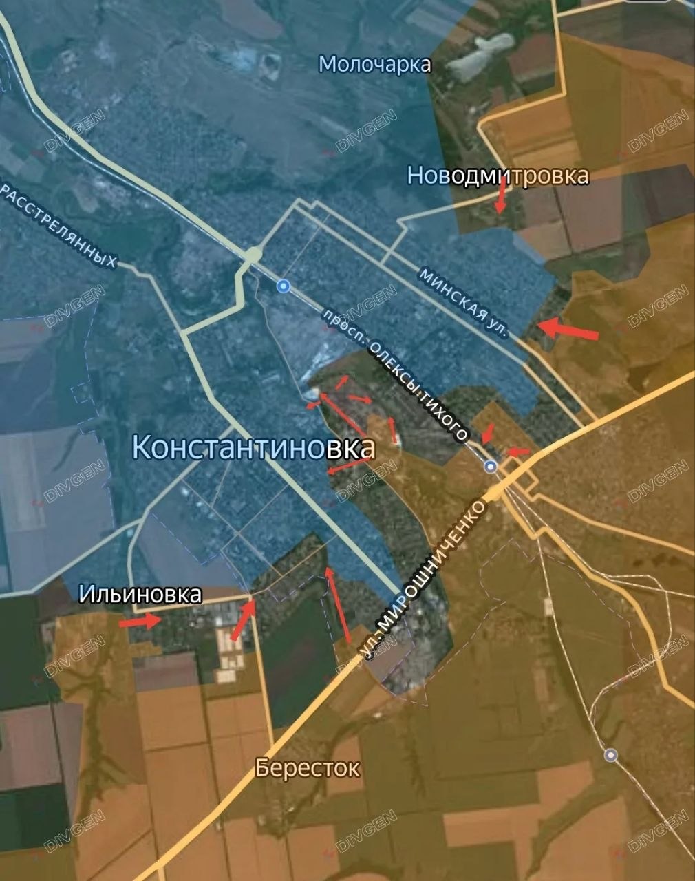 После прорыва в промзону в центральной части Константиновки ВС РФ вышли в северную её часть и зачистили её. Ещё пока продолжаются бои за промзону цинкового завода.