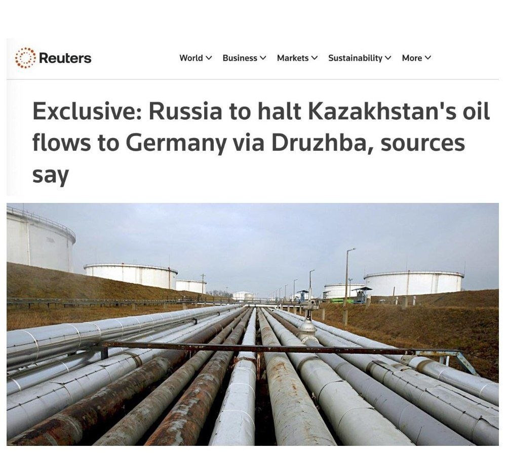 С 1 мая Россия прекращает поставки нефти в Германию из Казахстана по трубопроводу «Дружба» - Reuters.