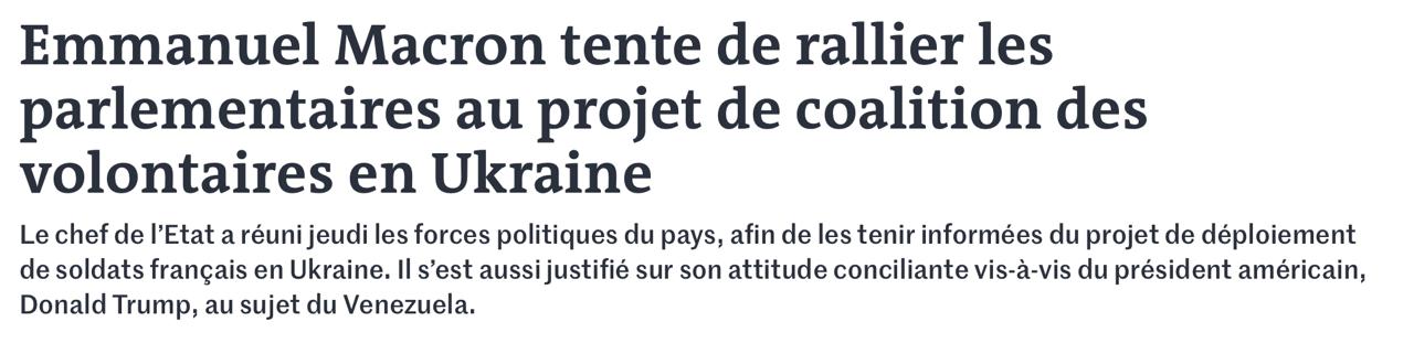 Президент Франции Эммануэль Макрон сообщил парламенту об отправке шести тысяч французских военных в Украину после заключения мирного соглашения, – Le Monde.