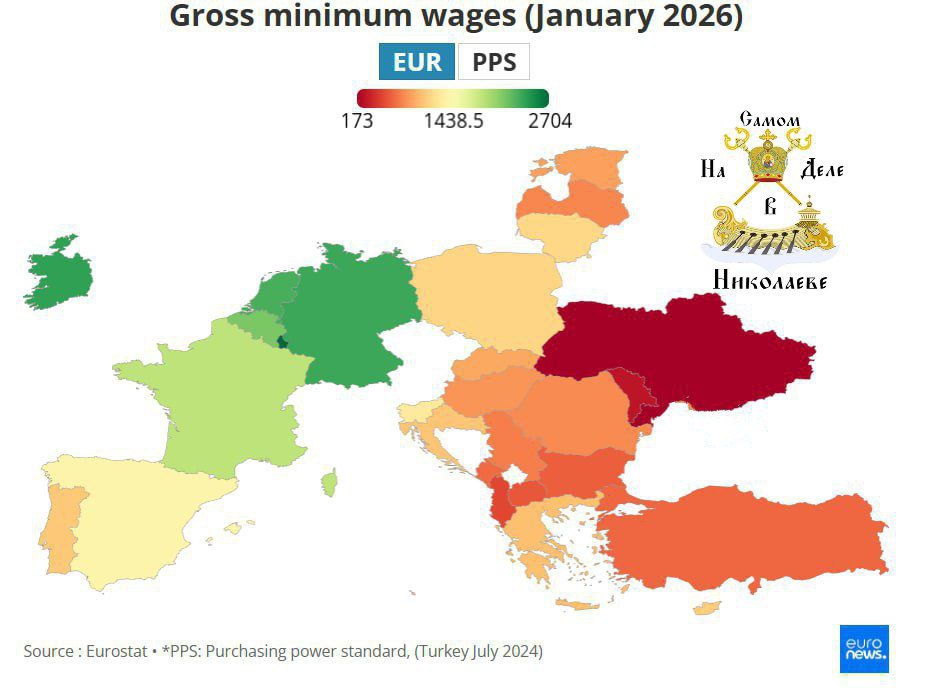 Итак, по данным европейской статистики, оклад украинцев составляет всего 173 евро!!!