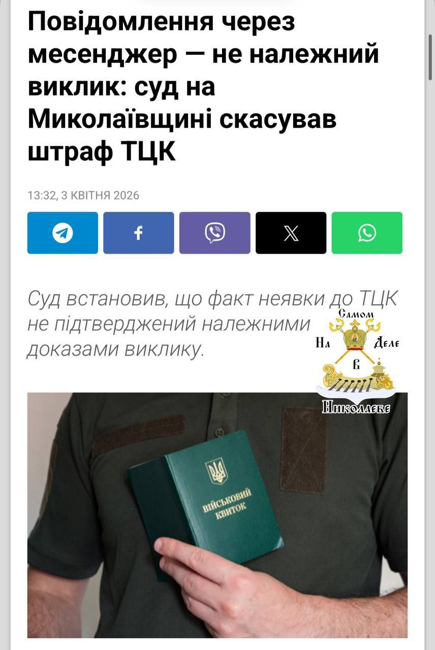 Судебно-юридическая газета сообщает, что ТЦК теперь оповещают мужчин через мессенджеры.