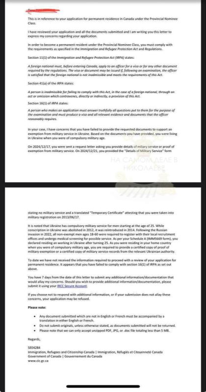 Интересная новость из Канады: украинским мужчинам, которые подались на ПМЖ, приходят письма из Министерства иммиграции. Там прямо требуют справку об освобождении от военной службы. И не просто «бумажку из сельсовета», а официальные документы...